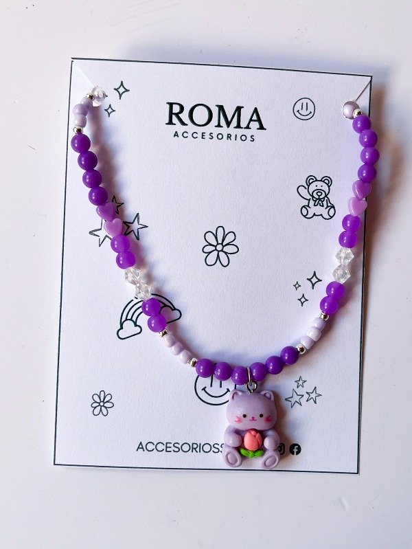Collar bolitas de plástico, con dije de resina