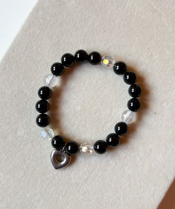 Pulsera elástica con bolitas de plástico y dije de acero quirúrgico.